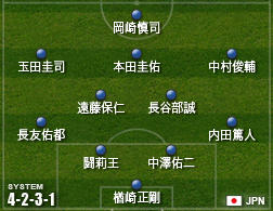 生年月日: 1981.04.24 身/体重: 185cm/82kg 国Aマッチ出: 37 得点 7 MF 10 中村 俊 NAKAMURA Shunsuke 生年月日: 1978.06.24 身/体重: 178cm/70kg 国Aマッチ出: 95 得点 24 MF 20 本 一 INAMOTO Junichi 生年月日: 1979.09.18 身/体重: 181cm/75kg 国Aマッチ出: 79 得点 5 MF 18 本田 圭佑 HONDA Keisuke 生年月日: 1986.06.13 身/体重: 182cm/76kg 国Aマッチ出: 12 得点 4 FW 11 玉田 圭司 TAMADA Keiji 生年月日: 1980.04.11 身/体重: 173cm/67kg 国Aマッチ出: 68 得点 16 FW 19 森本 幸 MORIMOTO Takayuki 生年月日: 1988.05.07 身/体重: 180cm/75kg 国Aマッチ出: 3 得点 1 追加昨天球的 藤 保仁 FW 7 藤 保仁 生年月日 1980.1.28 身 /体重 178cm/ 75kg ●其他球:http://samuraiblue.jp/fanzone/member/ 《世界をかす悟がある》 -好世界大吃一 次世足,推出世界をかす悟がある做, adidas合作出品世足相商品, 如【念T-Shirt】↓↓ 日本代表 2010 FIFA World Cup South Africa(tm)出念Tシャツ サイズは3 S、L、XO 段は ¥4,095-(税) 足球狂的日本人不可以到相多商品, 也可同步由スカパJSAT(株)代理放送6月11日幕的 「2010 FIFA ワルドカップ南アフリカ」全64典事, 貌似也定有3D位影像可供! 而台方面由【年代MUCH】代理播, 程可考:2010全民世足,世足看年代 另外最近呢~ 因世足即打的, 同都很很心程的!! 不像ミヤビ自己就很害怕日本的站.... 因除了洲家的名完全都是片假名阿阿阿(抱) 了像我一害怕片假名的同XD 我一起些世足的家名吧!!!! アジア(洲) 日本 オストラリア(澳洲) 北朝 (北) 国 (南) アフリカ(非洲) アルジェリア (阿及利) カメルン (喀隆) コトジボワル(科特迪瓦) ガナ (加) ナイジェリア (尼日利) 南アフリカ (南非) ヨロッパ(洲) デンマク(丹) イングランド(英) フランス(法) ドイツ(德) ギリシャ(希) イタリア(大利) オランダ(荷) ポルトガル(葡萄牙) セルビア(塞) スロバキア (斯洛伐克) スロベニア(斯洛文尼) スペイン(西班牙) スイス (瑞士) 北中米カリブ海(加勒比地) ホンジュラス(洪都拉斯) メキシコ(墨西哥) アメリカ (美) オセアニア(大洋洲) ニュジランド() 南米(南美洲) アルゼンチン (阿根廷) ブラジル (巴西) チリ (智利) パラグアイ (巴拉圭) ウルグアイ (拉圭) 有了【名照表】! 就算看日文也不怕! 而且若是看日本的世足相, 比台多很多唷!(竟是嘛) 同也可以一些足球相用以及 ..........便背名XDDD ●世足官:http://www.fifa.com/index.html ●日本YAHOO世足官:Yahoo!スポツ×スポツナビ - 2010 FIFA ワルドカップ 按此可前往繁田塾FB 按此可得知繁田塾最新 按此可前往繁田塾官