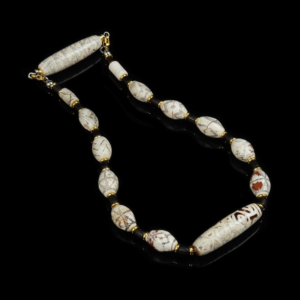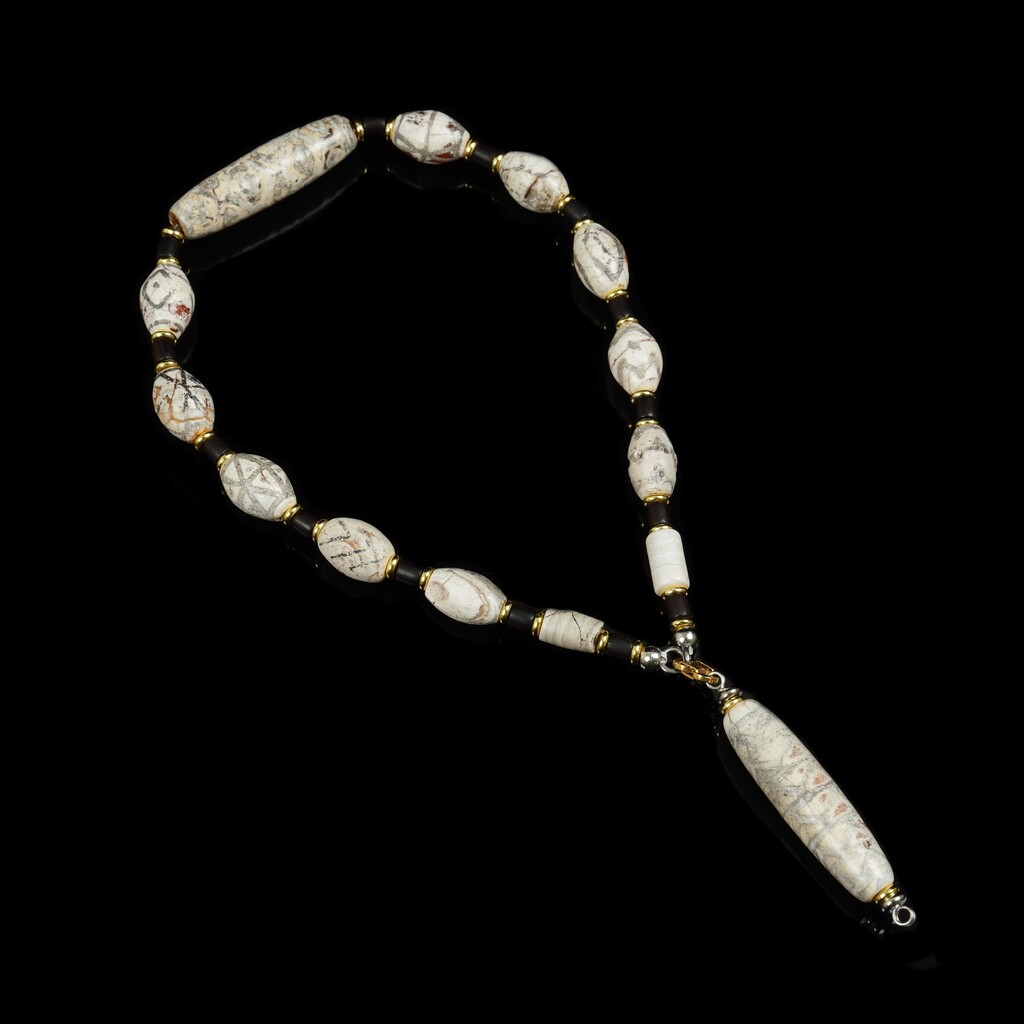 菩多佛教文物-西灰沁骨白珠(度43-48.5公分)
