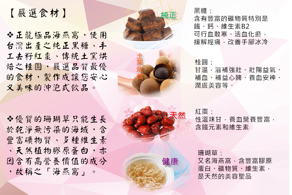 ?正品海燕,使用台出之黑糖、、南投的烘焙的桂,品最的食材,作成您安心又美味的泡式品,享受冷清健康。