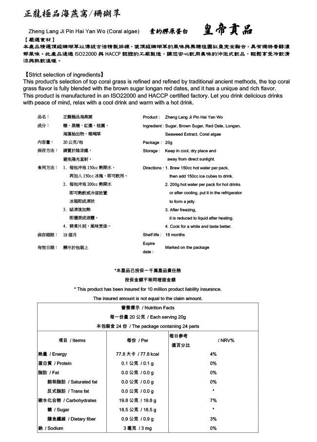 ?的珊瑚草只能生於乾污染的海域,含富物(、、)、多生素、天然植物原蛋白,由於富含大量素,可以促胃蠕,亦因含有高值的成分,故之「海燕」。