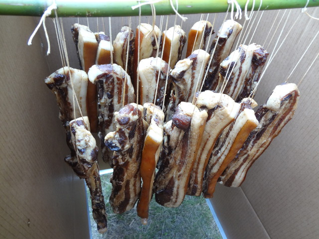 吃!由於每次肥瘦比例不同,吃的程度也不同,最好是取平均的肉切吃比,如果不,可以在最後包抹上一些海、花椒保存,如果,就打些花椒、黑胡椒最後抹一些在表面後真空包,有熟成的效果,度大抓5~8%就好。