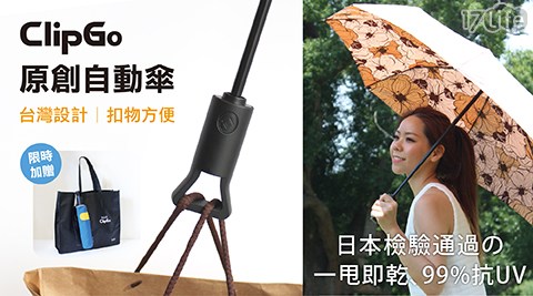 原的自「ClipGo可立扣™」,有扣了就走,方便勾物的利握把,家使用日本酒伊三防超布,提供「防水/防/防水」三防能,取得SGS三,新做法於面印花,凸特生活度,特加大18%至105cm,保更全面,由承工的台,提供外出窘境的晴雨神器。