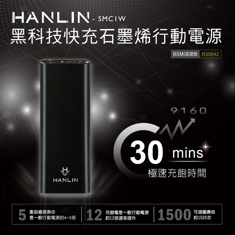 【HANLIN】- SMC1W 黑科技30分快充石墨烯行源 物超所值~~值的推
