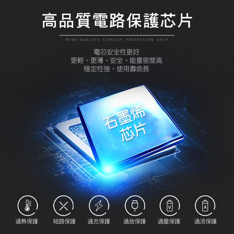 7.用石墨烯合材料池,能接受大流充(12V 5A)