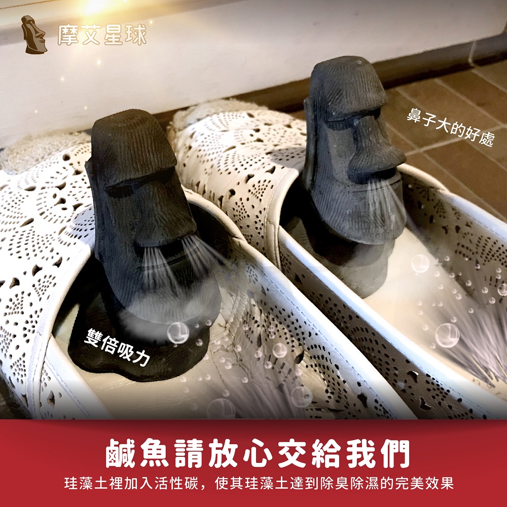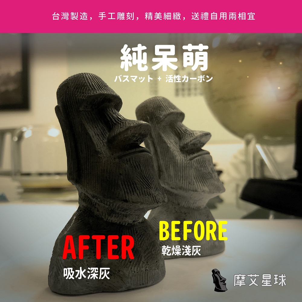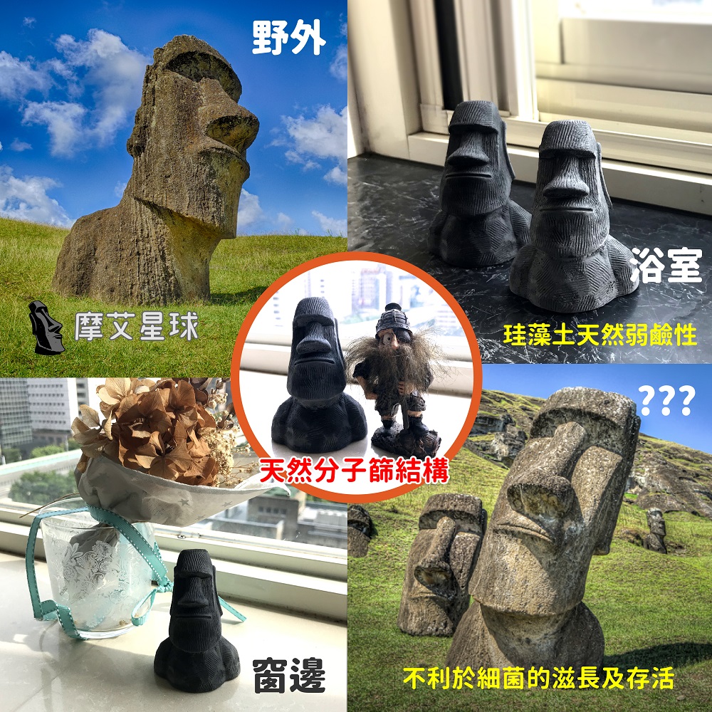 摩艾造型吸睛~藻土表面有微小孔,瞬吸收!