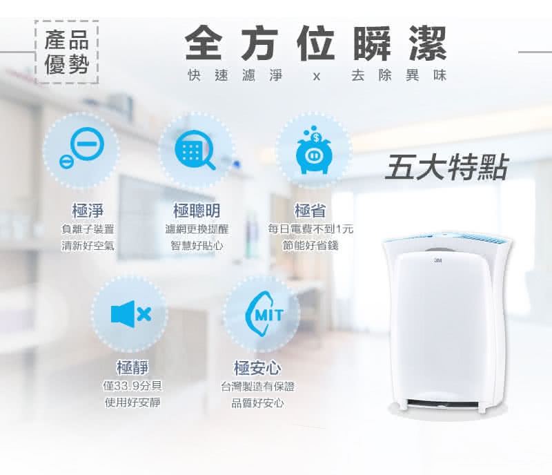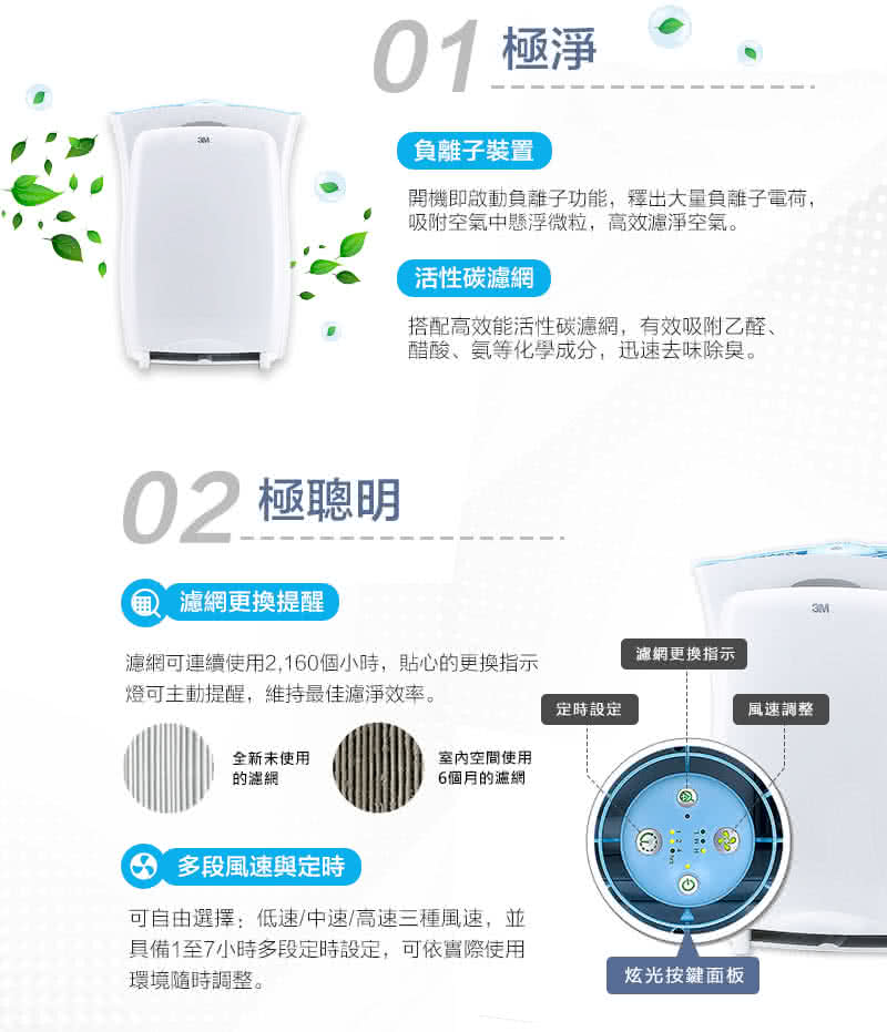 【3M】 呼吸超型空清(版)-3~7.5坪用◆:利,能底捕捉99.9%以上小於0.1微米的病菌及敏原◆除臭:搭配高效活性碳,有效降低味◆清新:子置,空更清新◆:低速35分,使用好安◆智慧:智慧型重更指示、多段定及三段速定◆安心:台造,品保最安心