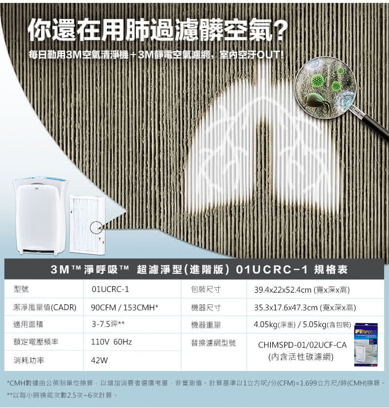 【0228前下抽元水器】3M 超6坪版空清-用 3-7.5坪(超值入CHIMSPD-01UCRC-1) ,推,箱,CP值,,,便宜,惠,介,排行,精,特,周年,,限