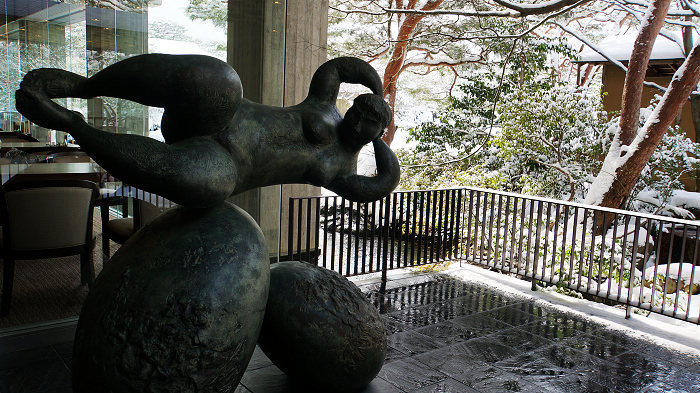 玻璃窗外的枯山水庭--融合大自然的美也是足立美的主要庭