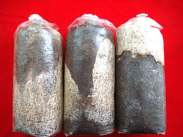 好的菌持大量作母、栽培,然後太空包者接菌,太空包的木屑一始呈褐色,香菇菌先出白色的菌,再慢慢褐色,最後由菇栽培。
