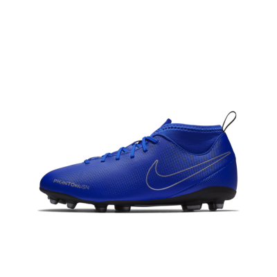 Nike Jr. Phantom Vision Club Dynamic Fit 小/大童多種場地足球釘鞋舒適貼合,內襯可包覆雙足,襪子般的鞋領則能包覆腳踝。紋理合成皮革可在場上提供精準度和控球力, 適用於多種場地的鞋盤具多功能,無論在天然偏硬草地或人工長草草皮場地等各種表面上都能提供優異抓地力。