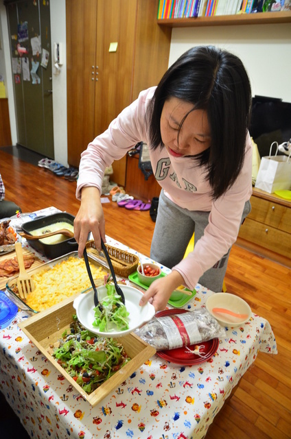 好後烤箱烤到金,立刻大身,成了宴客主食,
