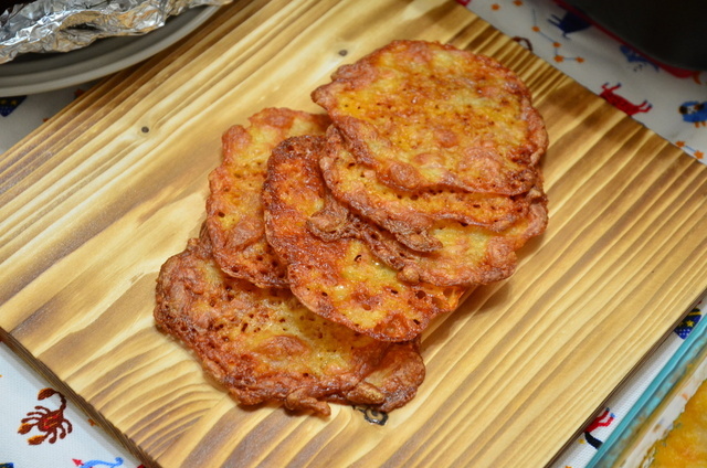 而cheese酥片更,把pizza cheese 抓成一小搓、一小搓,放烤烤,