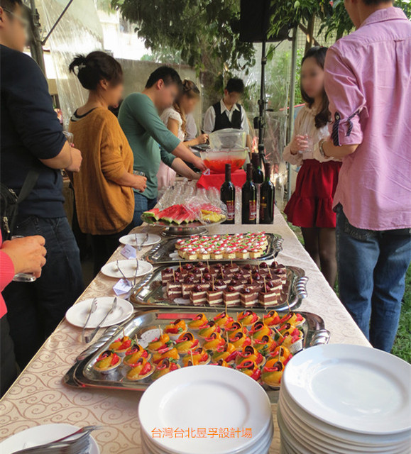 然心信我的新人都很好,婚天都雨天晴,光普照,但是要做好措施,最後我跟新娘商量,茶因有多客聚集吃喝,所以一定要搭篷,其他走道就想法新人做"接"的方式.