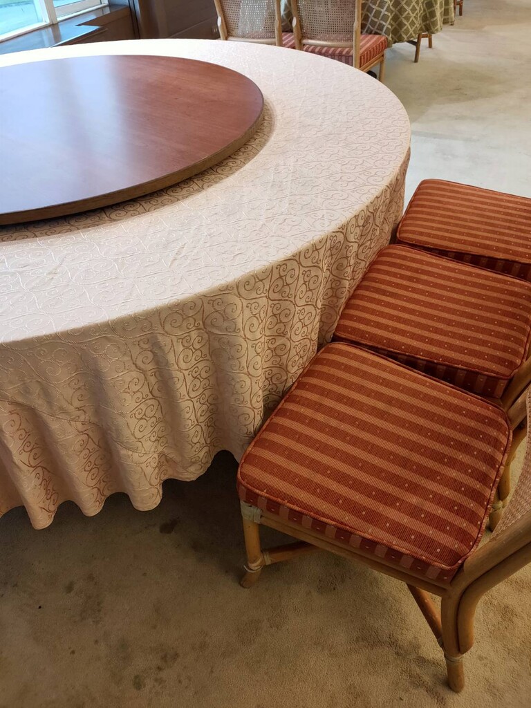 餐有的桌椅是子,桌子都是八尺大,我有那大的桌巾可,就用它的桌椅,桌巾和椅子色和餐的木很搭,潢於暖典雅味道,尚可接受。