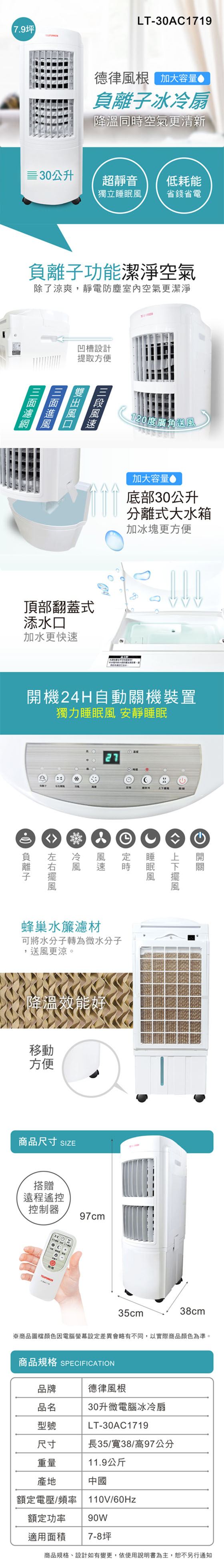 【TELEFUNKEN德律根】30公升微冰冷扇 LT-30AC1719 (加送循扇) ,推,箱,CP值,,,便宜,惠,介,排行,精,特,周年,,限