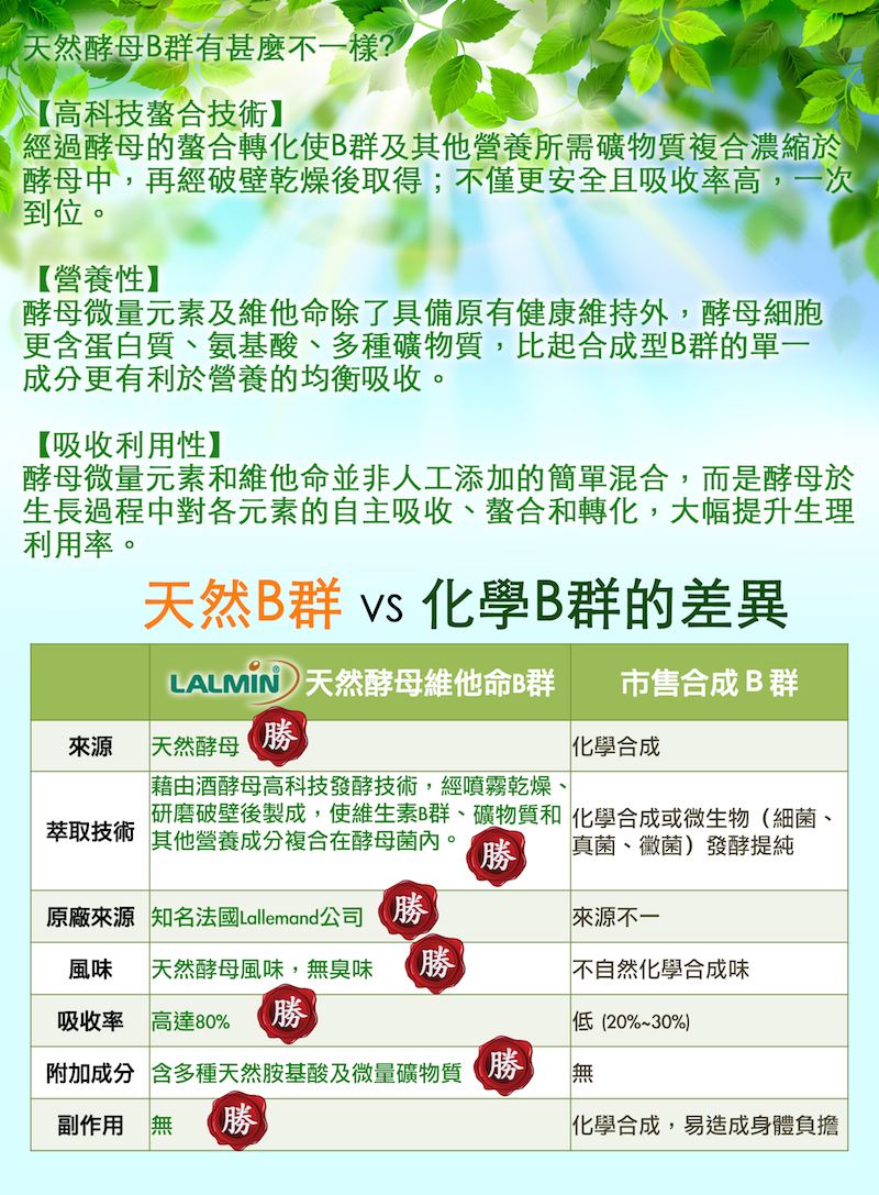 法Lalmin酵母B群,非合成、味,助均衡、增力,照全家人必商品!全素配方,素食者首!