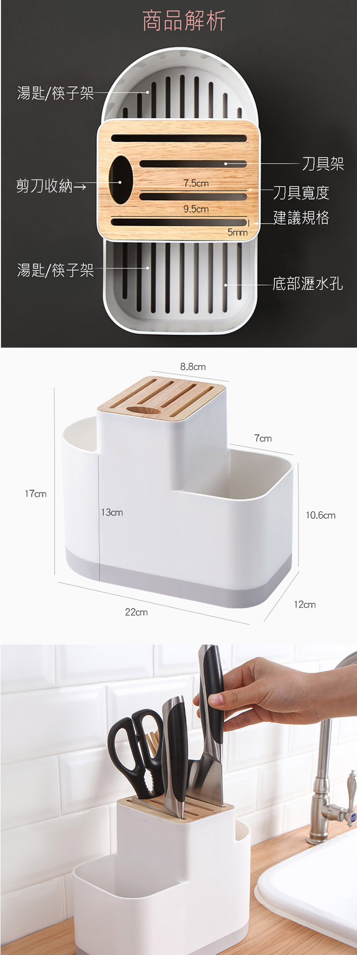 商品息特感高雅,用,多孔洞,各式刀具、剪刀分收好,底部可拆,易於清洗,水孔,餐具好收好快乾