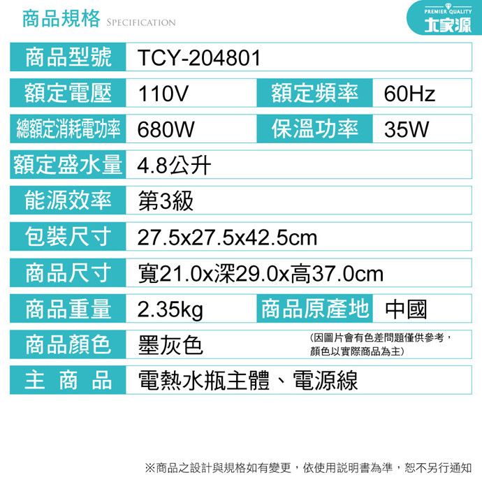 【大家源】4.8L二合一水瓶 TCY-204801 的品介在下面,