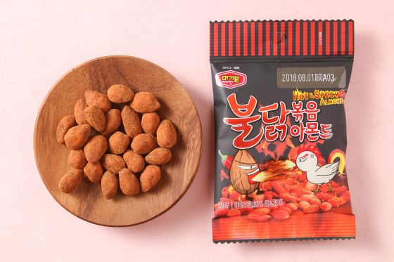 ●杏仁果口感酥脆又香又辣,越吃越停不下