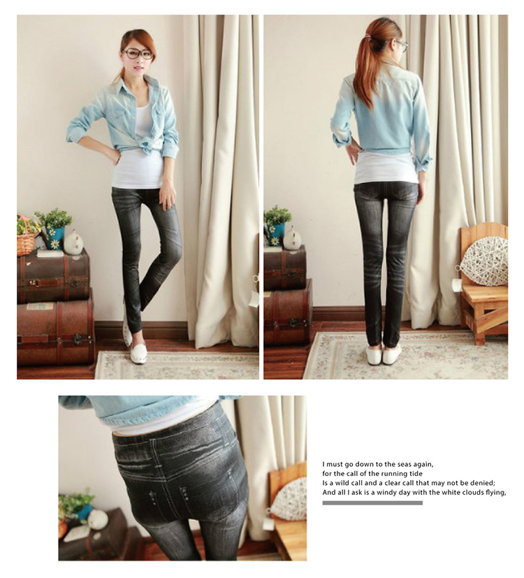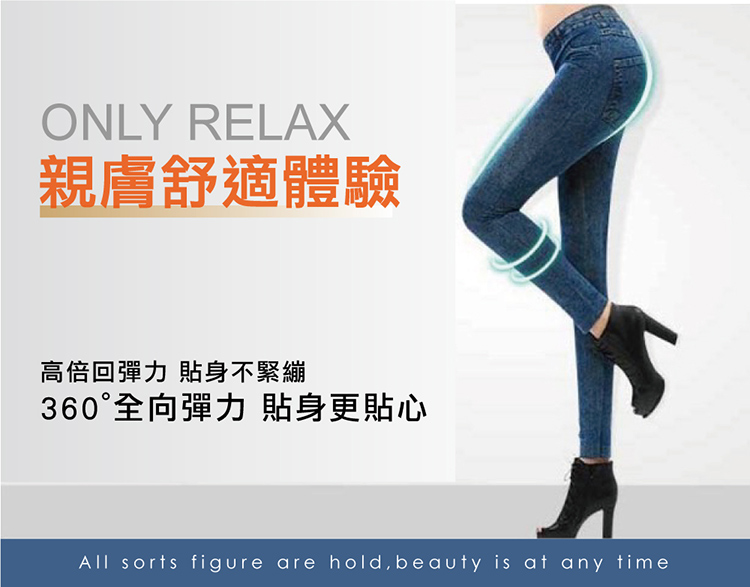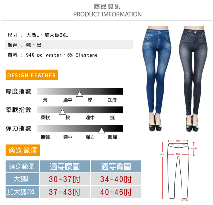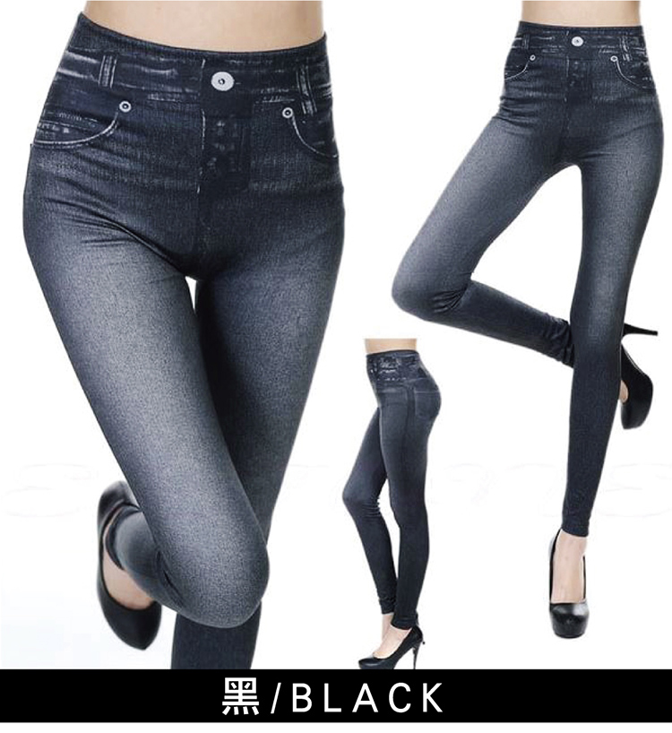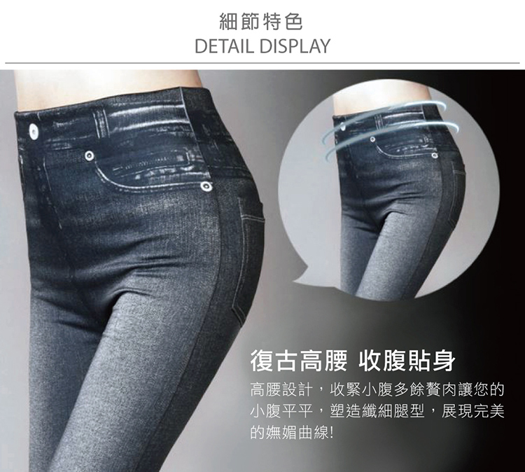 超逼真仿牛仔材,舒盈新!身版型,高腰收腹提臀,拉腿部,展完美身材~百搭色任!
