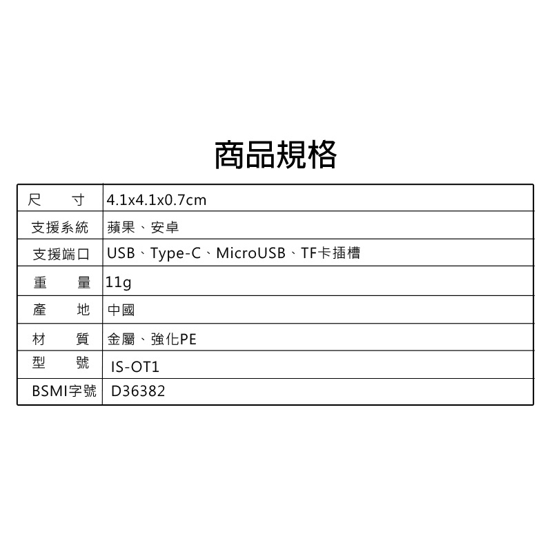 然有好康的要大家,而且在是小妹精挑【IS 思】IS-OT1S 合金限定版 多功能四合一卡(MicroUSB/Lightning/Type-C/USB/TF)比後的果,