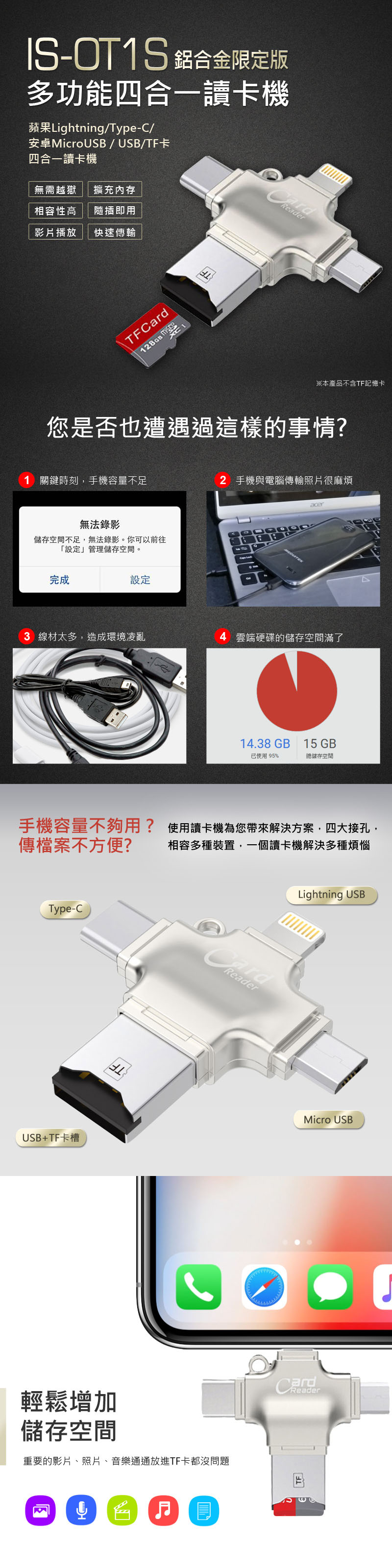 【IS 思】IS-OT1S 合金限定版 多功能四合一卡(MicroUSB/Lightning/Type-C/USB/TF) ,推,箱,CP值,,,便宜,惠,介,排行,精,特,周年,,限