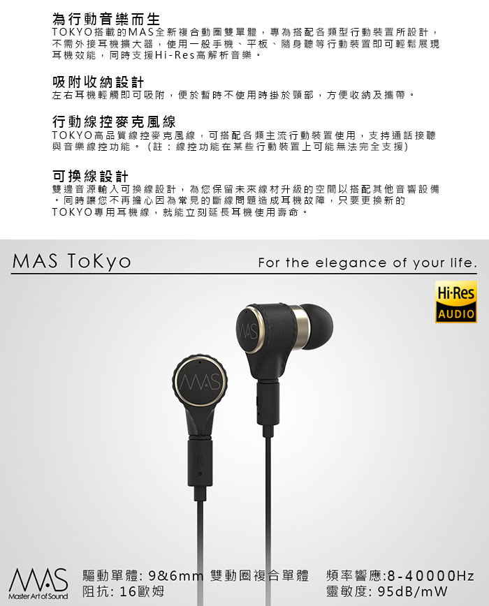 MAS TOKYO高音MMCX可入耳式耳(防氧通)