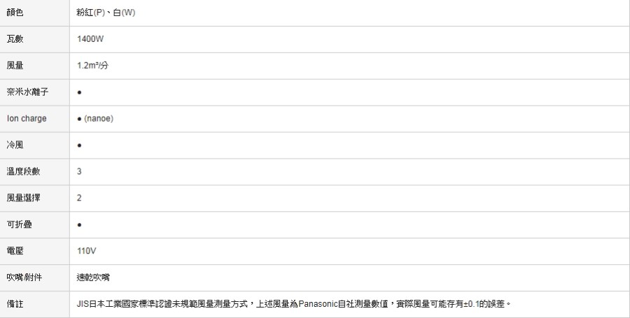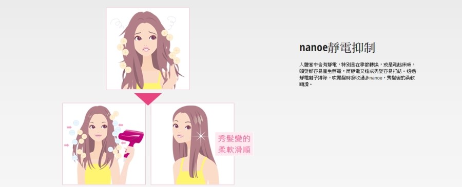 商品息特50度C柔控,nanoe奈米水子技,保水更子,量化,大力1400W 速乾吹嘴,均快速吹