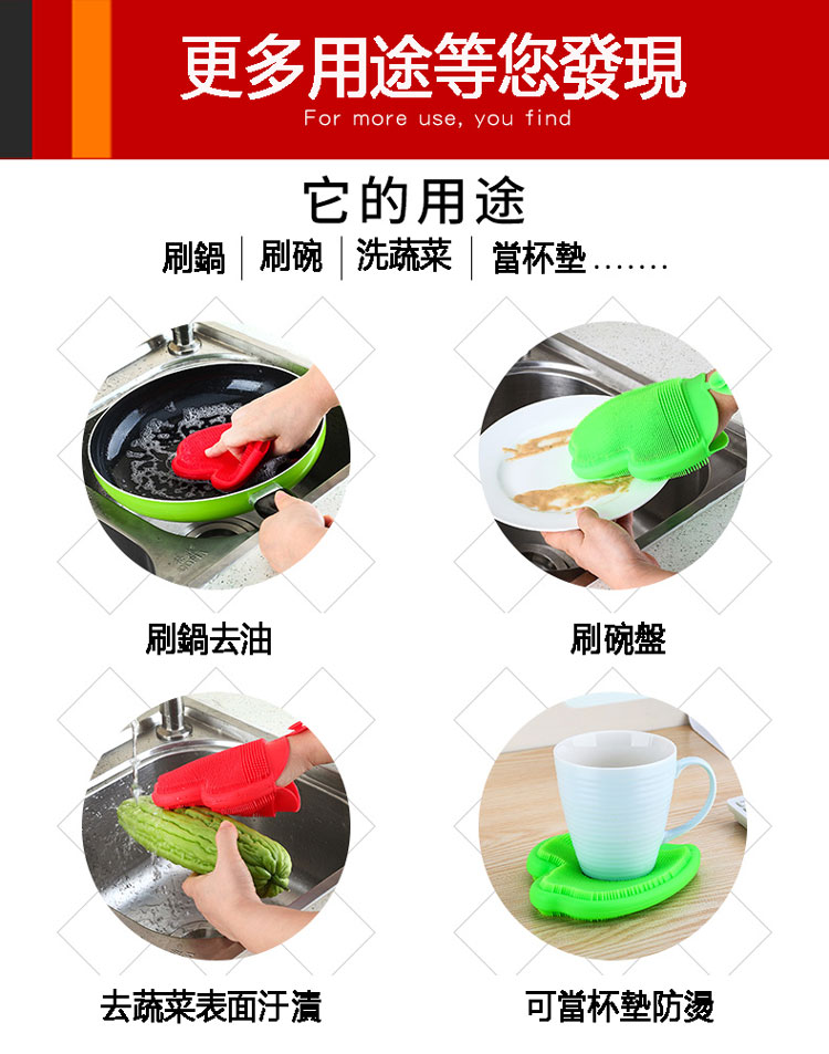 精矽材,安全健康耐高,不易形十分耐用!手套表面突出小,增加摩擦力有效防滑~心和吸您好收省空!是刷、碗、是隔手套都好用喔!
