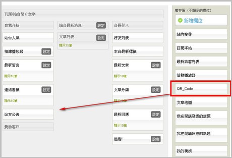 「QR code」拖曳至左方想放的位置,得按下最下方的「存版面」。