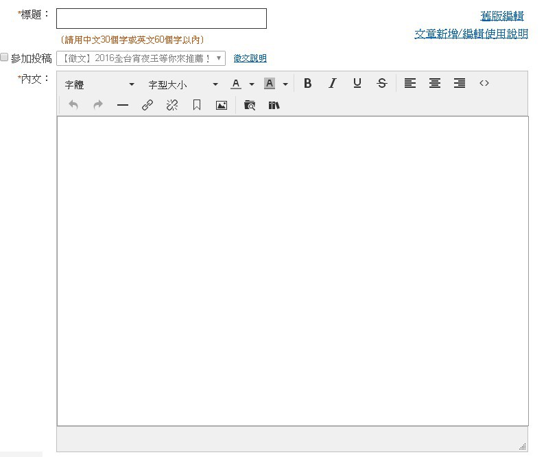 一下,我翻遍你所有的明定,就有找到於文章字的限制,而事上你不限制限制的。我真有遇以日字限制的站台。例如我五篇文章加起的字不得超2000,10篇文章加起的字也不能超2000字,30篇也相同,是什定?再定再多的站台多也只是限制每一篇的字。你定真的,我一篇文章要2000字,然後我整天只能呆不能第二篇,我,一旦字到限制,你第二篇文章就算容只有50字都送不出去,真言。