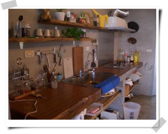 再配上老屋做成的大木桌跟幻的木造流理台