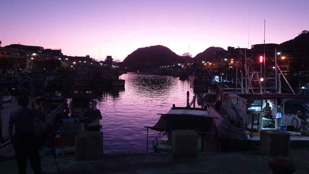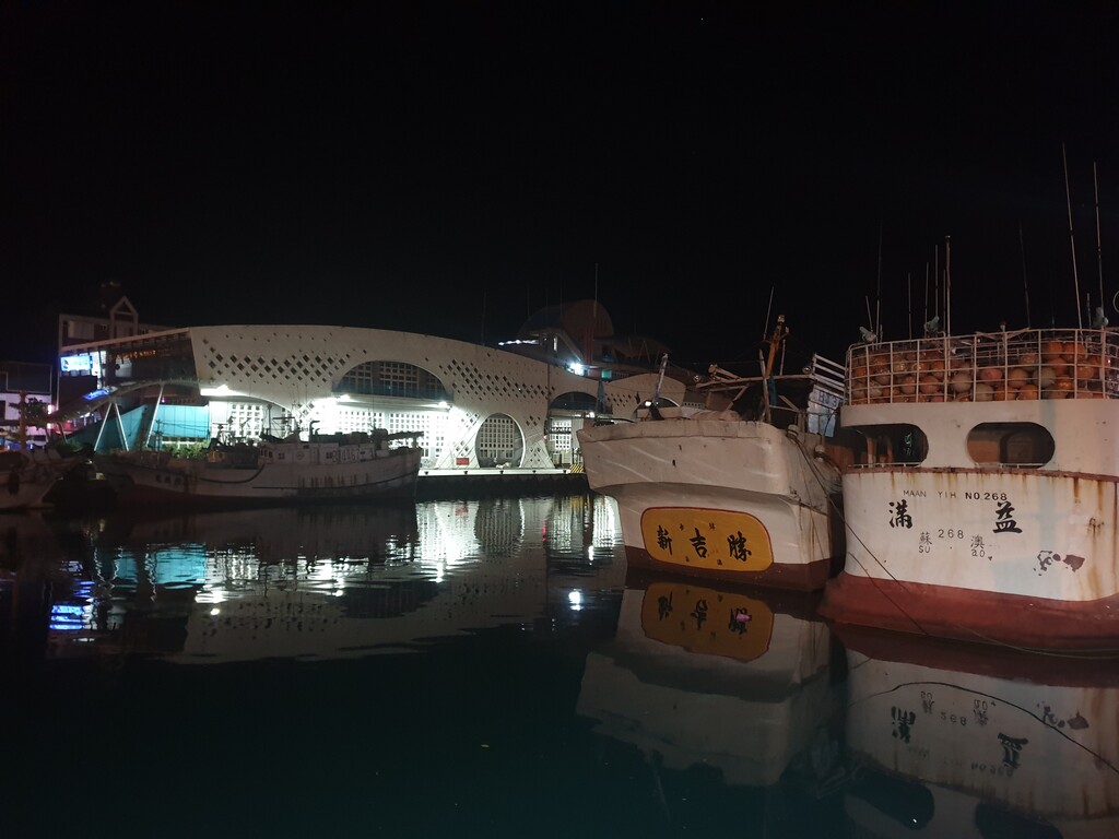 夜晚的南方澳港也有一的厚黑影和明暗比