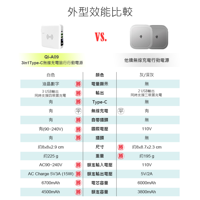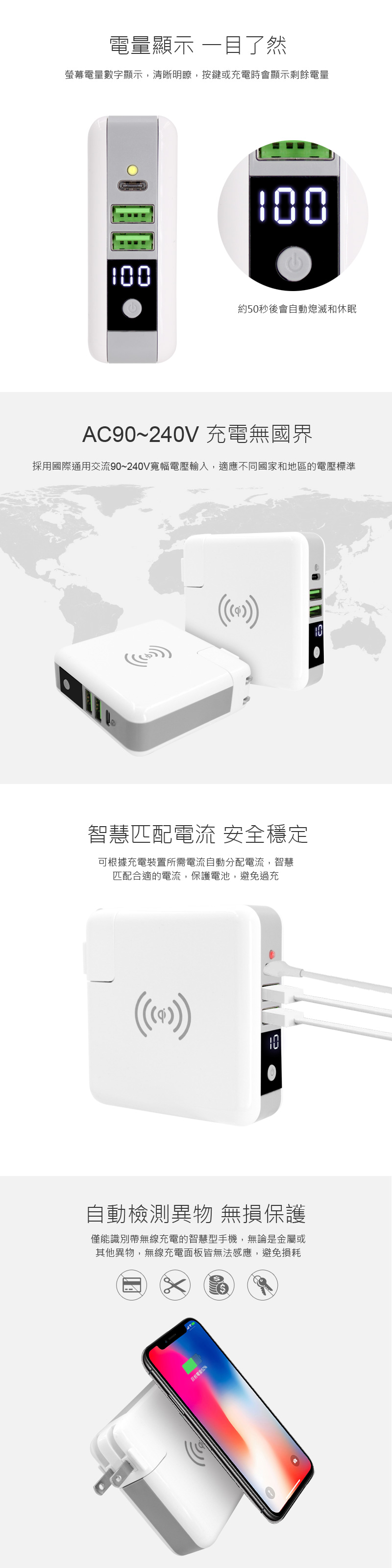 ★ 符合Qi,支援多款充手 ★ 自插,充★ LED量示,剩量一目了然 ★ 可折插