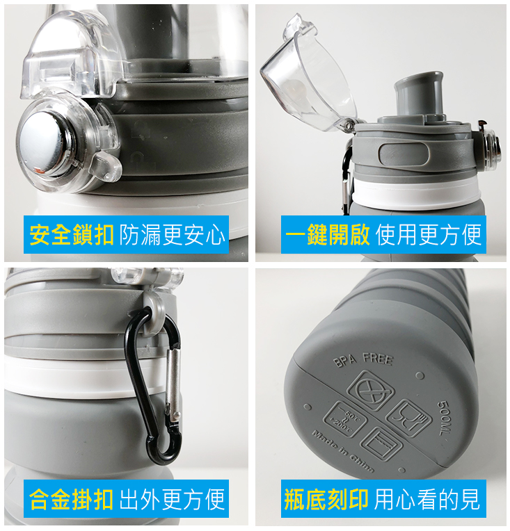 特的螺旋瓶身,一,省空!最大耐-50~200度,冷都很可以喔!安全扣,防漏更安心~
