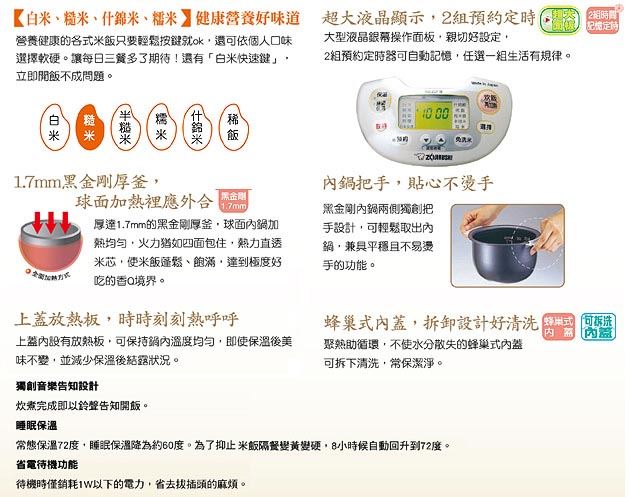 【象印 ZOJIRUSHI】日本原 6人份黑金微子(NS-ZDF10) 的品介在下面,
