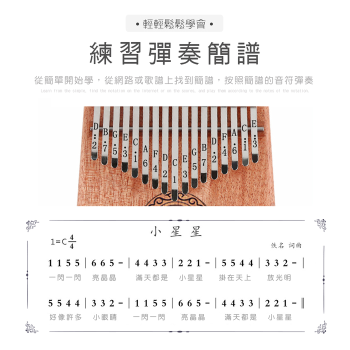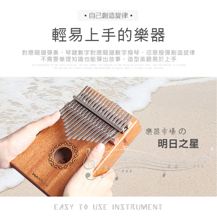 1.免音符(已激光在金片上)不有落的 大人小孩都合的器!超治的卡林巴拇指琴,是自非洲部族的器,有趣好上手,只要捧在手上就能奏,小、音清脆空,可以心演奏,是你下班後治疲心的小玩具,也是孩子上音的可器!