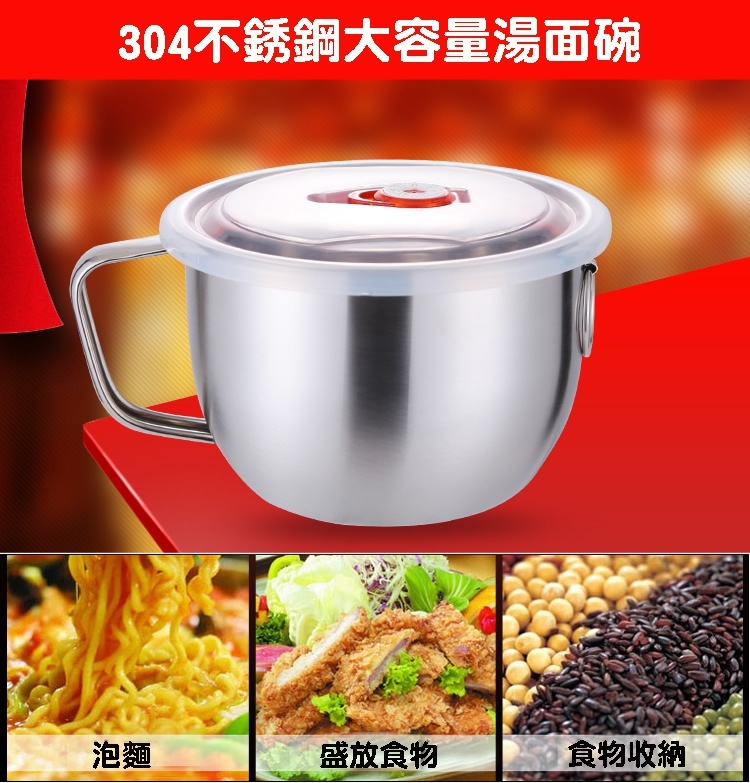 304不大容量泡碗,使用304不作,耐用度提升,更呵你的健康,超矽圈,完美住水,不外漏!除了泡之外,更可以存放各食物,可存放,食物保都在你的掌控之下,可使用磁或其他具直接加,方便好用!