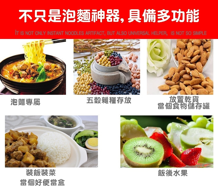 304不作,耐用度提升,更呵你的健康,超矽圈,完美住水,不外漏!除了泡之外,更可以存放各食友一致推CP值爆表物!