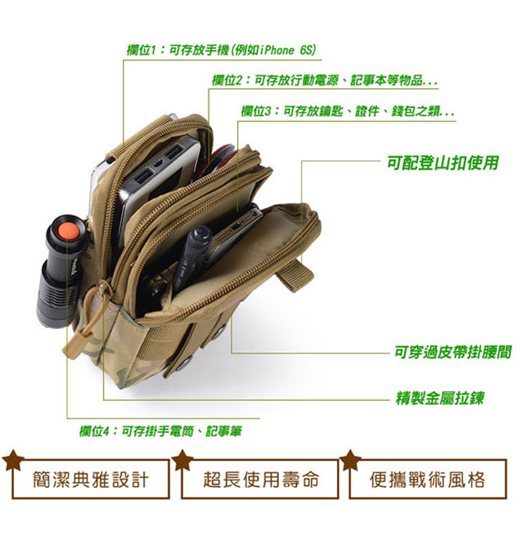 搭配登山扣具配在腰或扣在背包上或穿皮行,便怎搭都好!