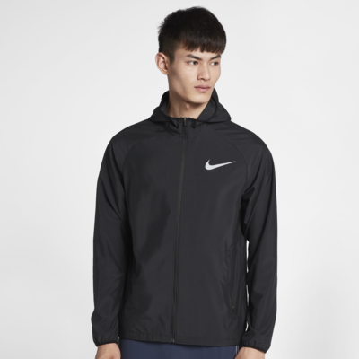 Nike Essential 男款跑步外套採用抗水材質,無畏風雨,即使突遇大雨依然能持續暢跑。附有扣環的彈性抽繩,確保轉頭時連身帽牢牢服貼不脫落。