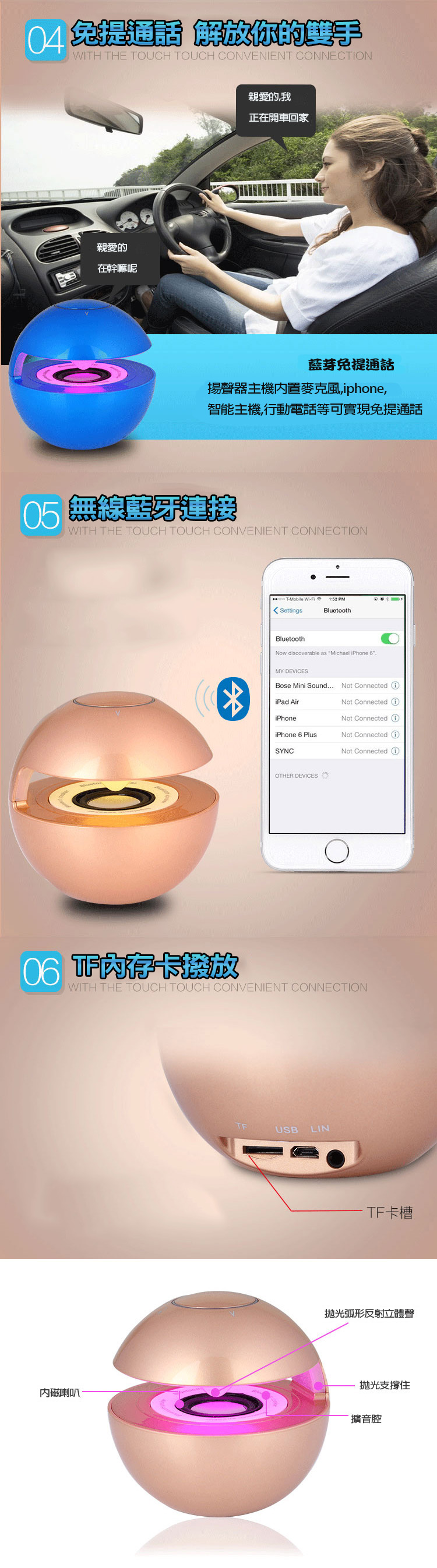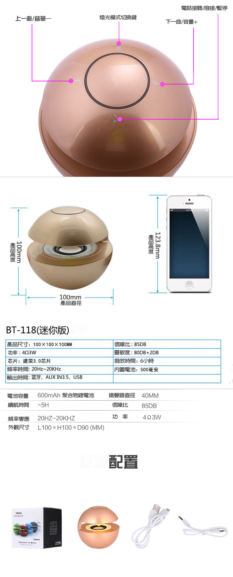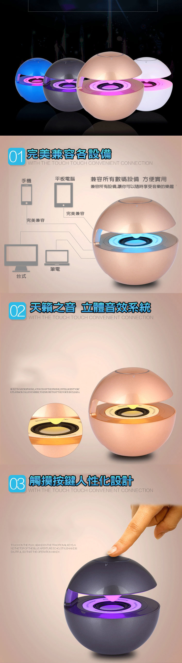 【春季最新款】糖衣子【DZ0330】七彩LED球形迷你牙音控喇叭重低音喇叭音箱 月送推送推