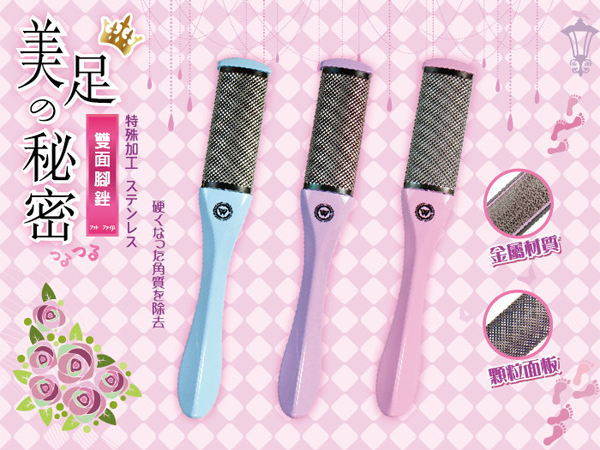 足部浸泡水5~10分,用粒面板沾後於足底硬皮回搓磨,金面於薄角做部搓磨。