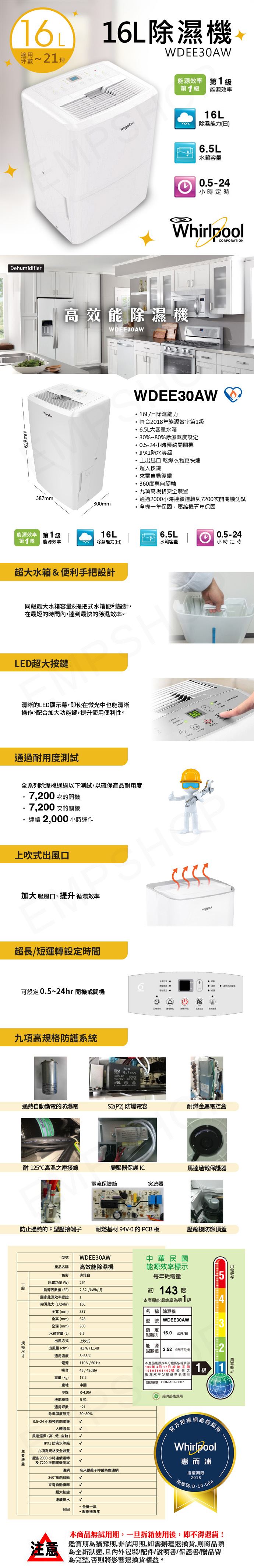 【惠而浦Whirlpool】16L能除 WDEE30AW ,推,箱,CP值,,,便宜,惠,介,排行,精,特,周年,,限