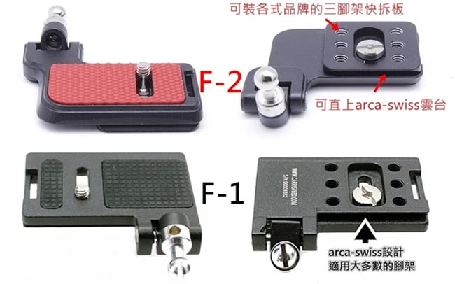 另由於CarrySpeed F-2快拆板和Sirui TY-LP70快拆板本身就有Arca-Swiss,若您的三架台一是相容Arca-Swiss,用二款快拆板就一也可以直上三架!