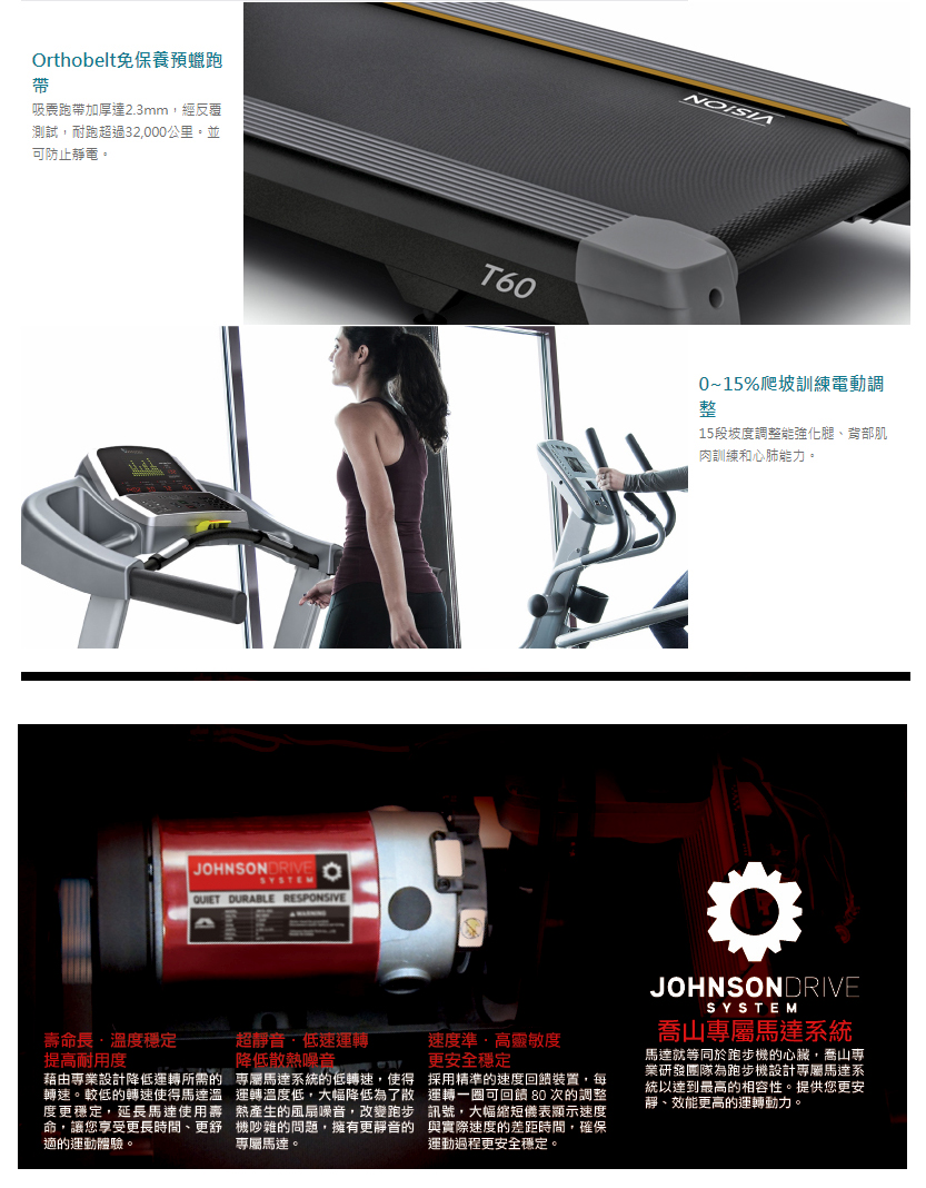 市最低JOHNSON山 VISION商用跑步 T60《商用俱部》 ,推,箱,CP值,,,便宜,惠,介,排行,精,特,周年,,限