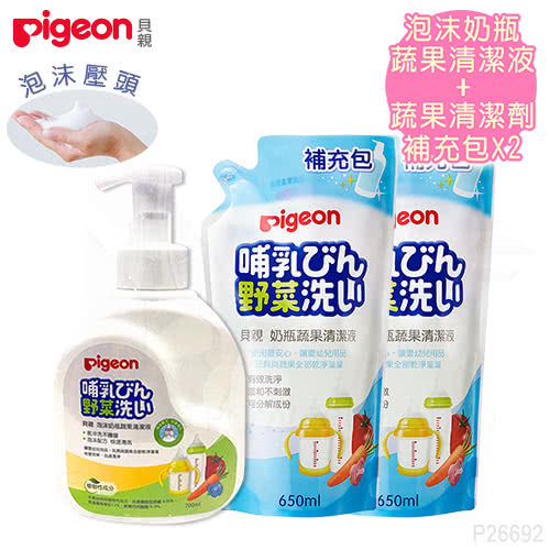 11特惠活,到到:【Pigeon 】泡沫奶瓶蔬果清合-泡沫700ml-1+650ml充包-2(蔬果清泡沫合奶瓶清)