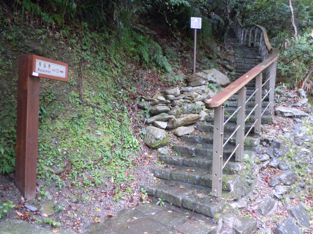 途中,很幸的通往布洛的步道,然一路是往上走的梯步道,可是路程不,400公尺,20~25的程,就作是腿力,走看看吧!走步道,小蔡背著背包,提著沉重的行李,而且著(今天大多都下著雨),在行不易的情下,居然只花了21分走完步道,力算不。