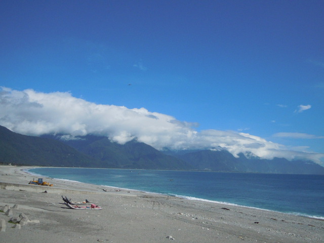 一早看到天晴朗,心想,或到七星潭是不的,可看到碧海天的景,於是便跑去向人借了一部自行,在大致路後便快上路了,不一始不利,我到美山公,才自己路了,七星潭往海走,怎到美山了呢?立即旅地拿出仔研究了一番,了好一段工夫才入正途,幸的是,於是我到了七星潭,海天一色的,真是美啊!