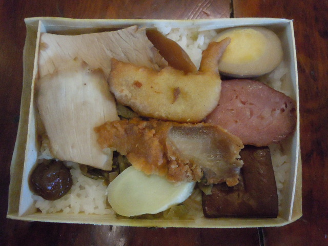 ↑ 池上便(70元),用的是最好的花米,便最大的特色是,盛菜的餐盒用木盒具,被呼吸的木盒,因木盒吸收多的水,米保持香Q可口的口感,且食物不易,配菜亦是精心挑及烹煮,才有口碑第一等的池上便呈在大家眼前。